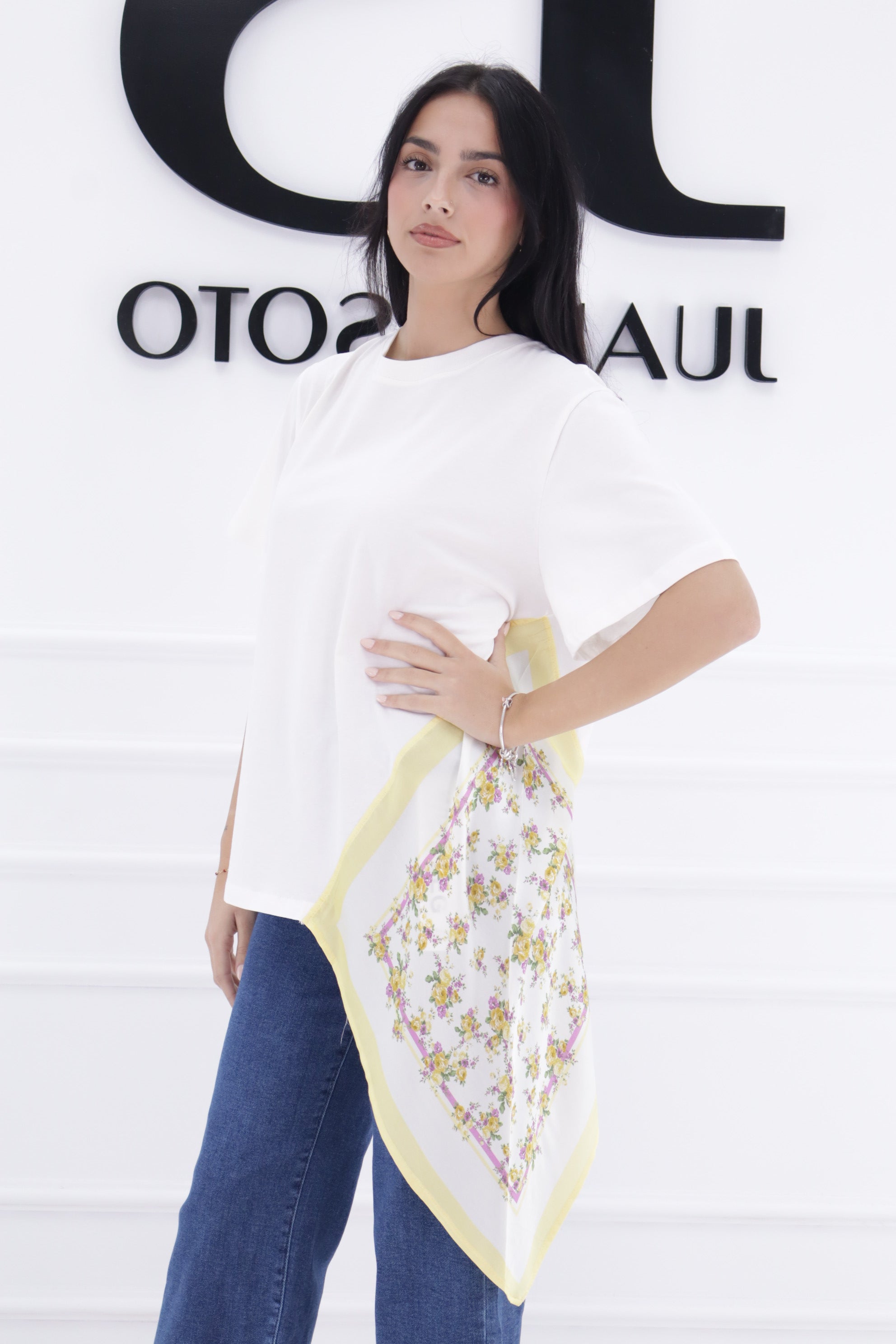 Blusa lado pañuelo flores